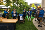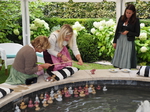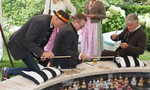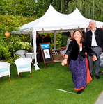 Doch die Musiker der Augustiner-Kapelle sorgten im Garten der Villa mit zünftiger Blasmusik für beste Stimmung, bis es nach rund 45 Minuten endlich weiterging.