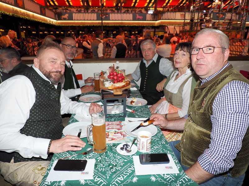 Bei bayerischen Schmankerln tauschte man über zwei Stunden lang gemeinsame Erinnerungen aus. Zum Abschied überreichte Siegfried Able den Damen ein wunderschönes Seidentuch, das an das 10-jährige Jubiläum des Marstall-Festzeltes erinnert.