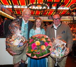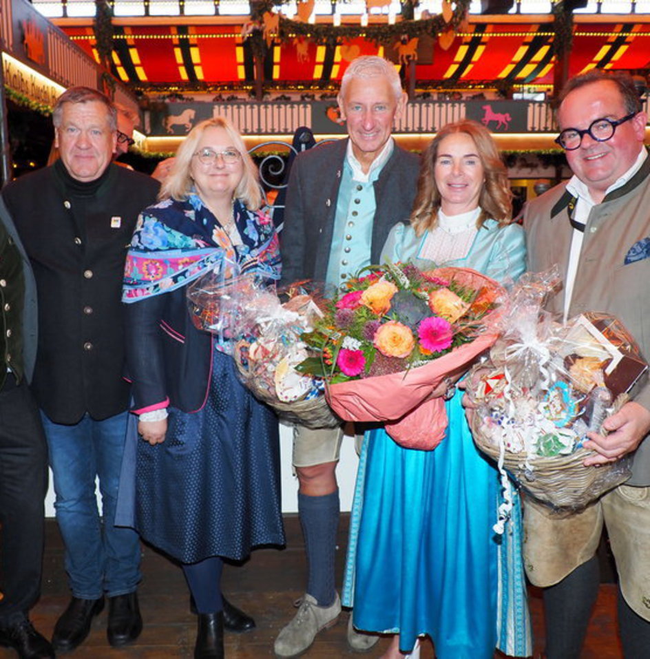 Trotz seines vollen Terminkalenders ließ es sich Wiesn-Chef Clemens Baumgärtner nicht nehmen, die Schausteller herzlich zu begrüßen. Als Dank überreichte ihm Norbert Lange einen Korb mit einem Miniatur-Karussell und köstlichen Wiesn-Süssigkeiten.