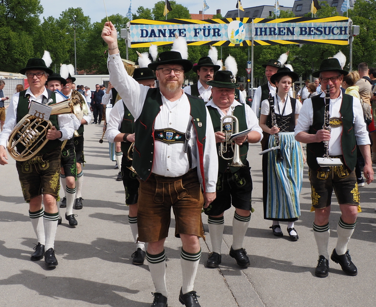 Um 11 Uhr eröffnete Wolfgang Grünbauer zusammen mit seinen Oktoberfestmusikanten den Brauchtumstag mit einem traditionellen Standkonzert am Eingang des Frühlingsfestes.
