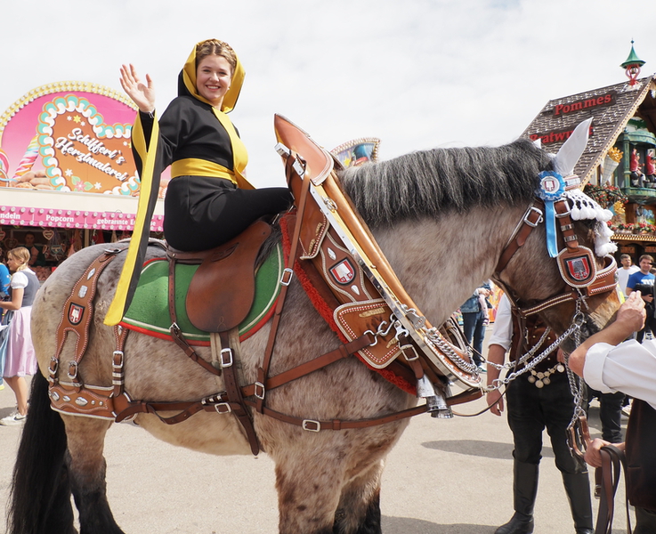 Anschließend zogen die Trachtler, Tanzgruppen und Musikkapellen, angeführt vom Münchner Kindl hoch zu Pferd, über das Frühlingsfestgelände.