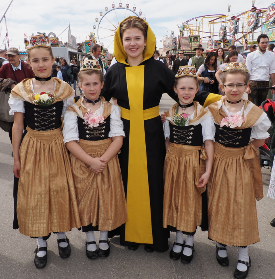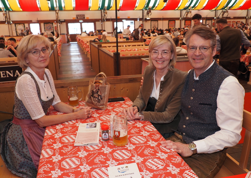 Zum ersten Mal dabei das Münchner Kindl, Franziska Inselkammer. Manfred Newrzella vom Festring München, das Münchner Kindl und die Leiterin des Frühlingsfestes, Yvonne