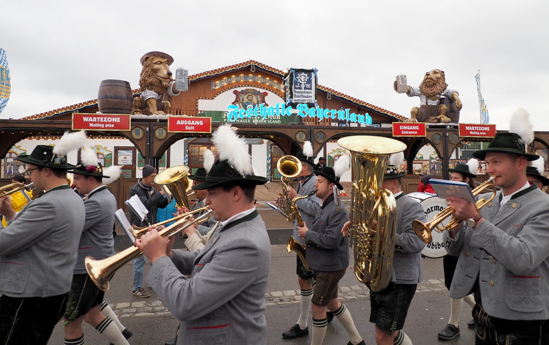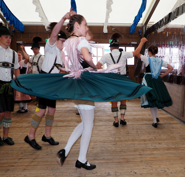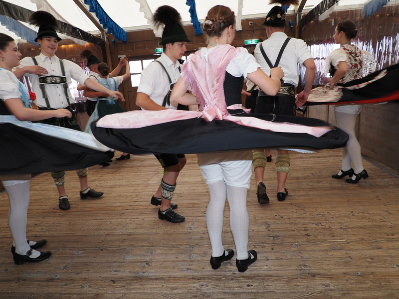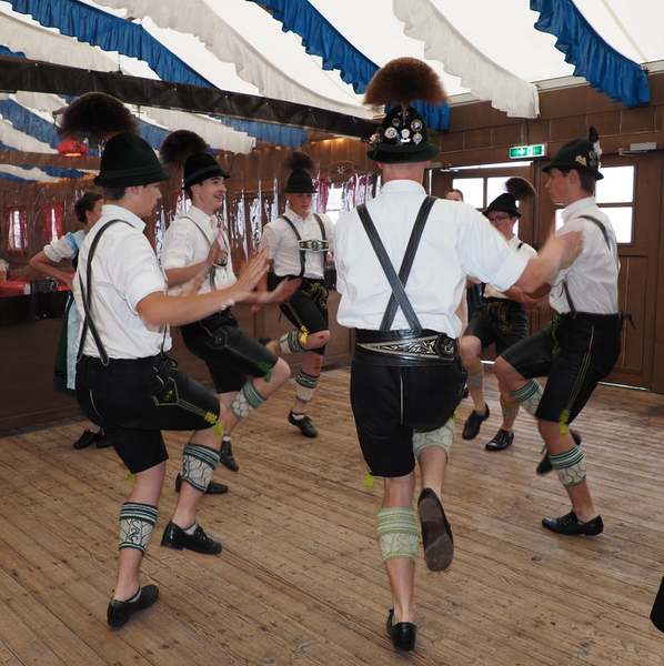 Am Nachmittag erklang in den Festzelten fröhliche Blasmusik. Ein begeisterndes Fotomotiv boten zudem die Tanzgruppen vor den Festzelten und Biergärten.