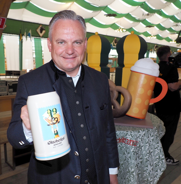 Oktoberfest-Krug 2025 der Stadt München vorgestellt. Er ist nicht nur ein Stück Wiesn-Geschichte, sondern auch ein begehrtes Sammlerstück.