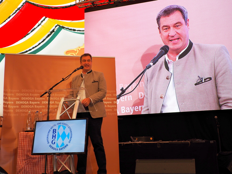Begeisterter Beifall bei der Rede von Söder: „Gerade weil die Zeiten so schwierig sind, weil die Menschen so viel ausgehalten haben, weil wir anderen helfen wollen, brauchen wir ab und zu Kraft, müssen wir die Möglichkeit haben durchzuschnaufen“. Das freundliche Gesicht Bayerns sei „nicht die Staatsregierung, sondern die bayerische Gastronomie“. Die Branche habe vier Milliarden Euro Unterstützung erhalten, aber: "Ihr wollt gar kein Geld vom Staat, ihr wollt ja nur die Möglichkeit, euren Beruf auszuüben“, so Söder.