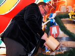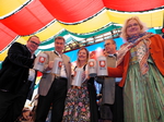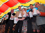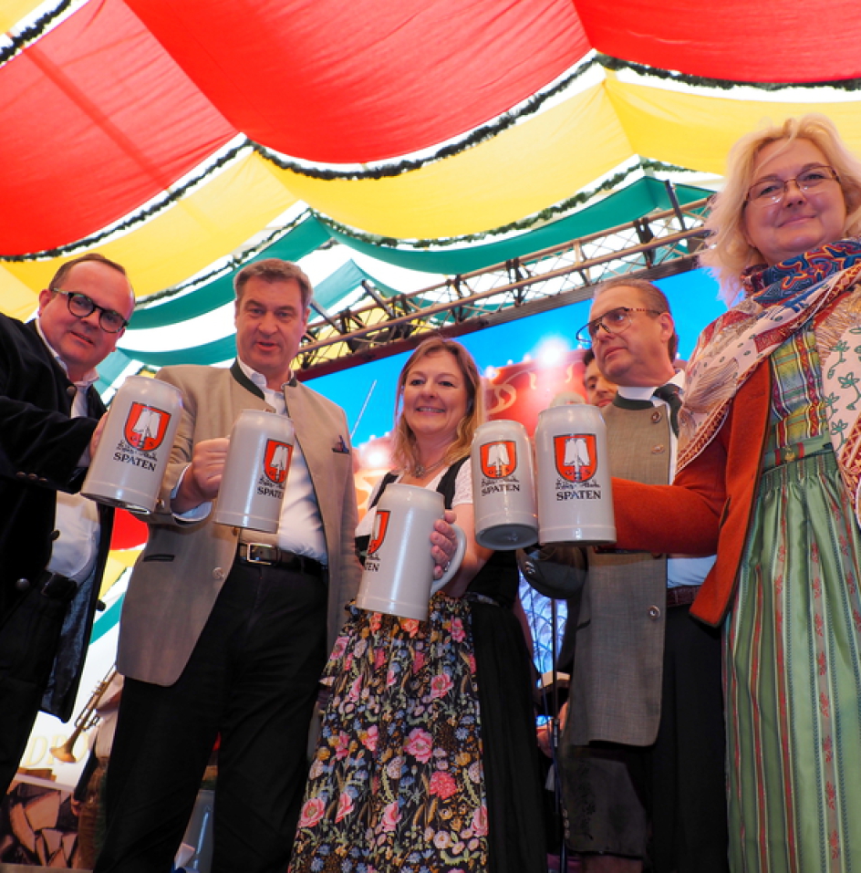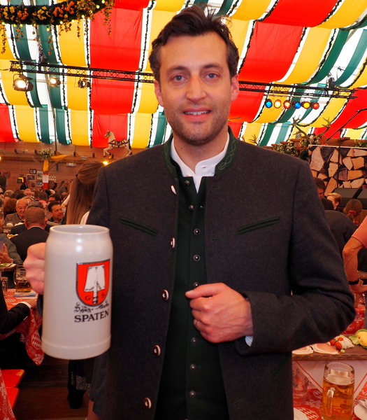Wirtschaftsreferent und Wiesn-Chef Clemens Baumgärtner hat pünktlich um 16:00 Uhr im Hippodrom souverän mit 2 Schlägen angezapft.