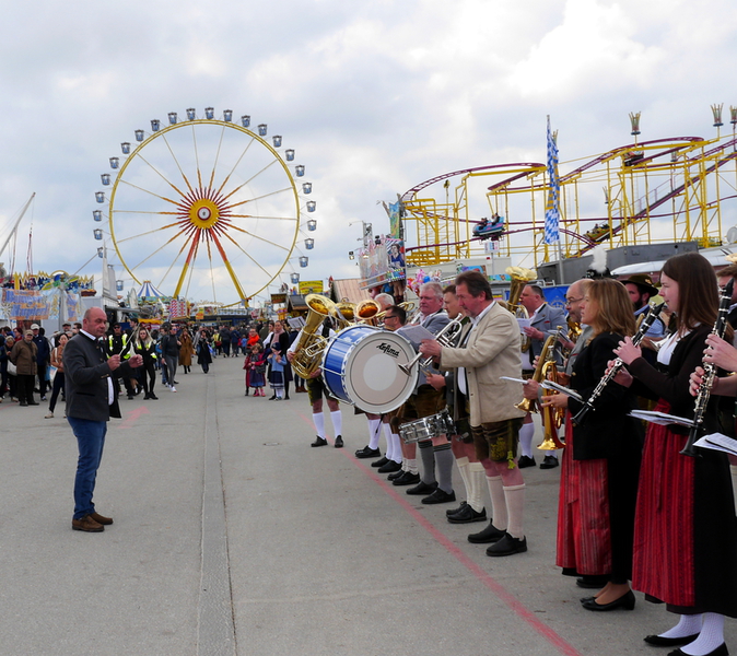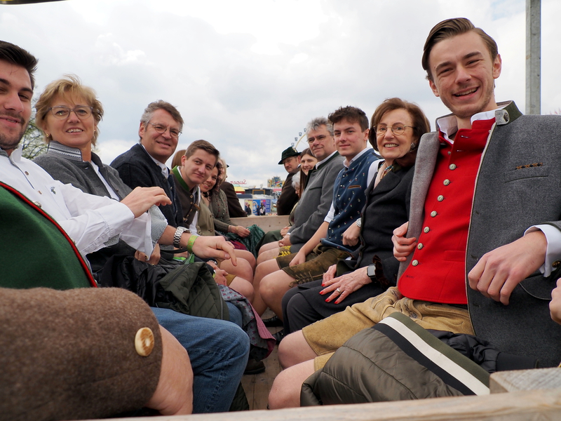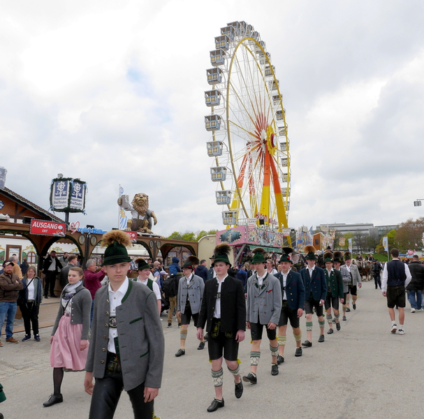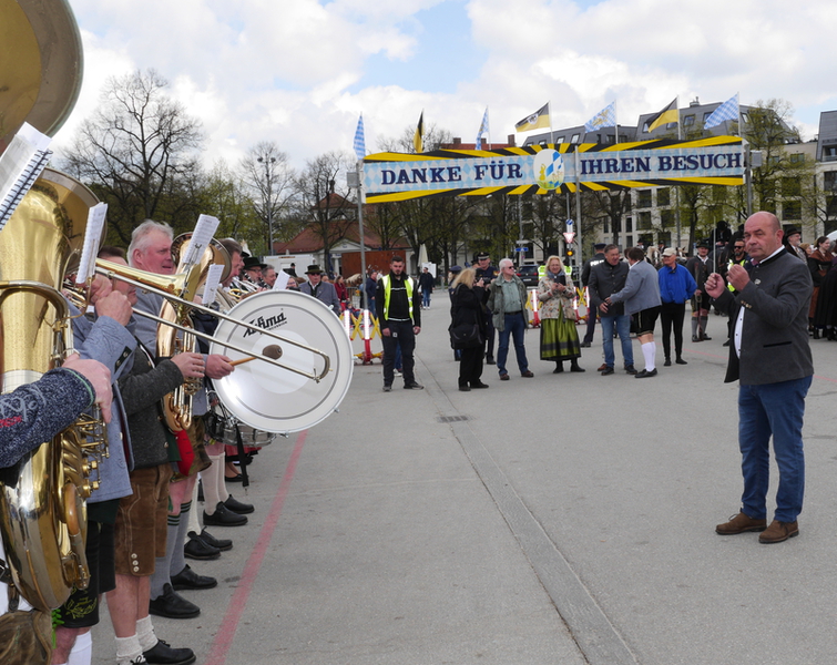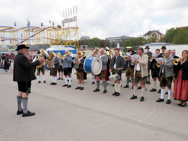 Nach drei Jahren Pause wurde auf dem Frühlingsfest 2023 wieder den Tag des Brauchtums gefeiert. Wolfgang Grünbauer mit seinen Oktoberfestmusikanten begrüßte die Gäste um 11:00 Uhr am Eingang des Festgeländes mit einem Standkonzert. Anschließend zogen die Kapellen, gefolgt von Trachtlern und Ehrengäste in Kutschen über das Festgelände.