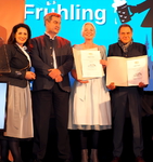 Eine besondere Auszeichnung gab es für die beiden Frühlingsfest-Wirte Tina Krätz (Hippodrom) und Peter Schöniger (Festhalle Bayernland), überreicht von Landwirtschaftsministerin Michaela Kanniber (CSU): „Ausgezeichnetes Bayerisches Festzelt“
