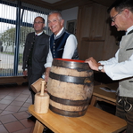 Nach den offiziellen Worten hieß es: „O’zapft is!“ – mit zwei kräftigen Schlägen zapfte Michael Möller souverän das erste Fass Oktoberfestbier 2025 an.