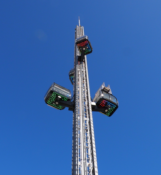 Spektakuläre Aussichten aus 71 Meter Höhe: Der Sky Lift bietet vier Gondeln mit gläsernem Bodenfenster und Platz für je 20 Personen. Zwei Gondeln drehen sich an der Spitze, während die anderen unten bereitstehen. Barrierefreier Zugang inklusive.