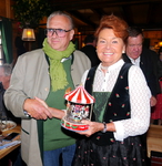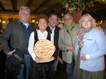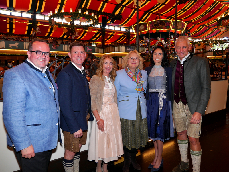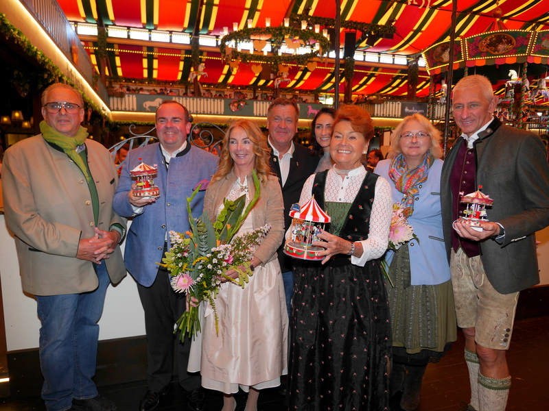 Dabei auch Wiesn-Chef Clemens Baumgärtner, dem Schausteller-Boss Robert Eckl ein Mini Karussell zur Erinnerung überreicht hat. Bei den Gastgebern, Sabine, Verena und Siegfried Able, bedankten sich die Schausteller mit einem Blumenstrauß und einem Mini-Riesenrad. Able: „Es ist uns eine große Ehre, dass Sie bei uns sind“.