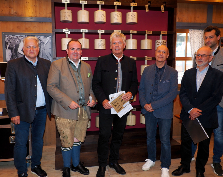Eine weitere Neuheit gab es in der Anzapfbox im Schottenhamel Festzelt. Die Söhne des verstorbenen langjährigen Wiesn-Stadtrats Hermann Memmel schenkten der Stadt dessen Sammlung von Anzapf-Schlegeln der Oberbürgermeister. Memmel hat jedes Mal den Schlegel samt Unterschrift des jeweiligen OB an sich genommen und zu Hause aufbewahrt. Jetzt sind sie nach Jahren aufgereiht in einem großen Regal und werden nach dem Anzapfen am Samstag in das Museumszelt gebracht.