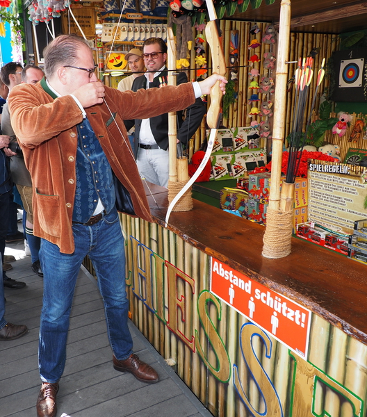 Neu auch das "Dschungel-Bogenschießen", eine Schießbude mit Pfeil und Bogen. Clemens Baumgärtner begeistert: "Pfeil und Bogen, aber ohne Indianer - da sind wir politisch voll korrekt!"