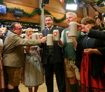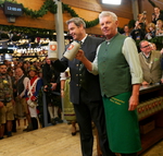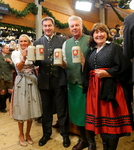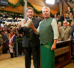 Auf der Empore im Schottenhamel Festzelt ließ sich die gesamte Politprominenz, ob schwarz, rot oder grün, das erste Wiesn-Bier schmecken.