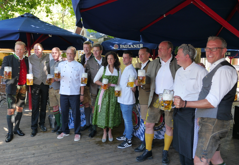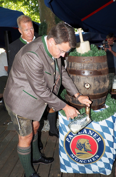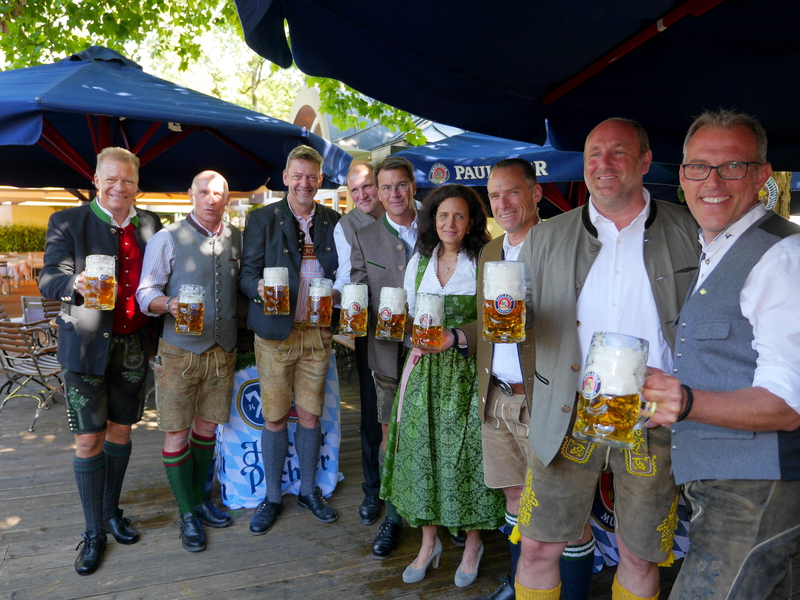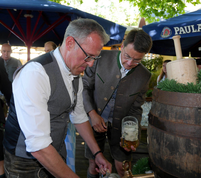 beim Einschenken routiniert durch Andreas Steinfatt und Dr. Jörg Lehmann, CEO bei der Paulaner Brauereigruppe.