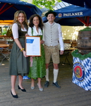 Vor der Verkostung hat Andreas Steinfatt zunächst der Wirtin des Paulaner Festzeltes, Arabella Schörghuber, die Auszeichnung „Klimaneutrales Festzelt 2022“ überreicht.