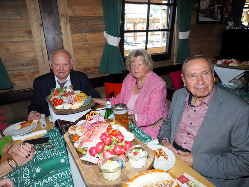 Bei bayerischen Schmankerln wurden über zwei Stunden lang Erinnerungen ausgetauscht. Zum Abschied überreichte Siegfried Able jedem ein wunderschönes Seidentuch des Marstall-Festzeltes, worüber sich alle sehr freuten.