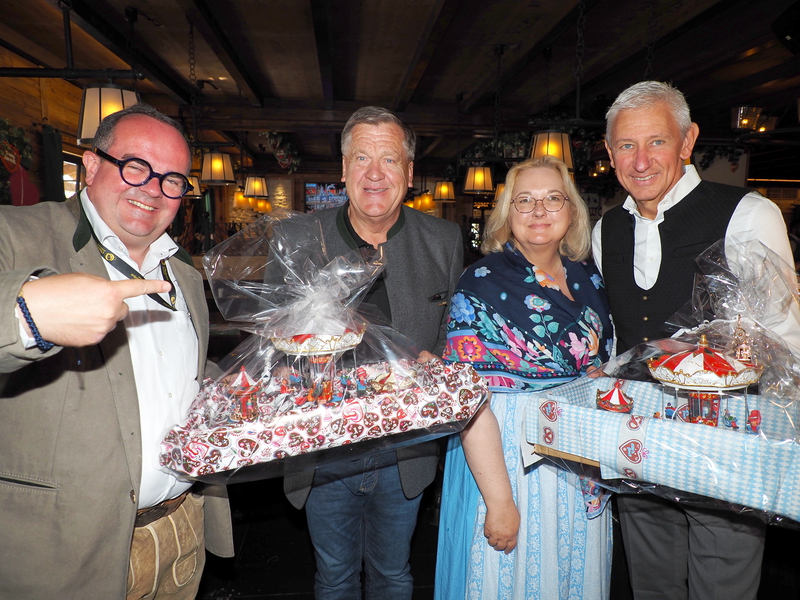 Auch Wiesn-Chef Clemens Baumgärtner war anwesend, dem Norbert Lange eine Miniaturausgabe des Oktoberfestes als Erinnerung überreichte.