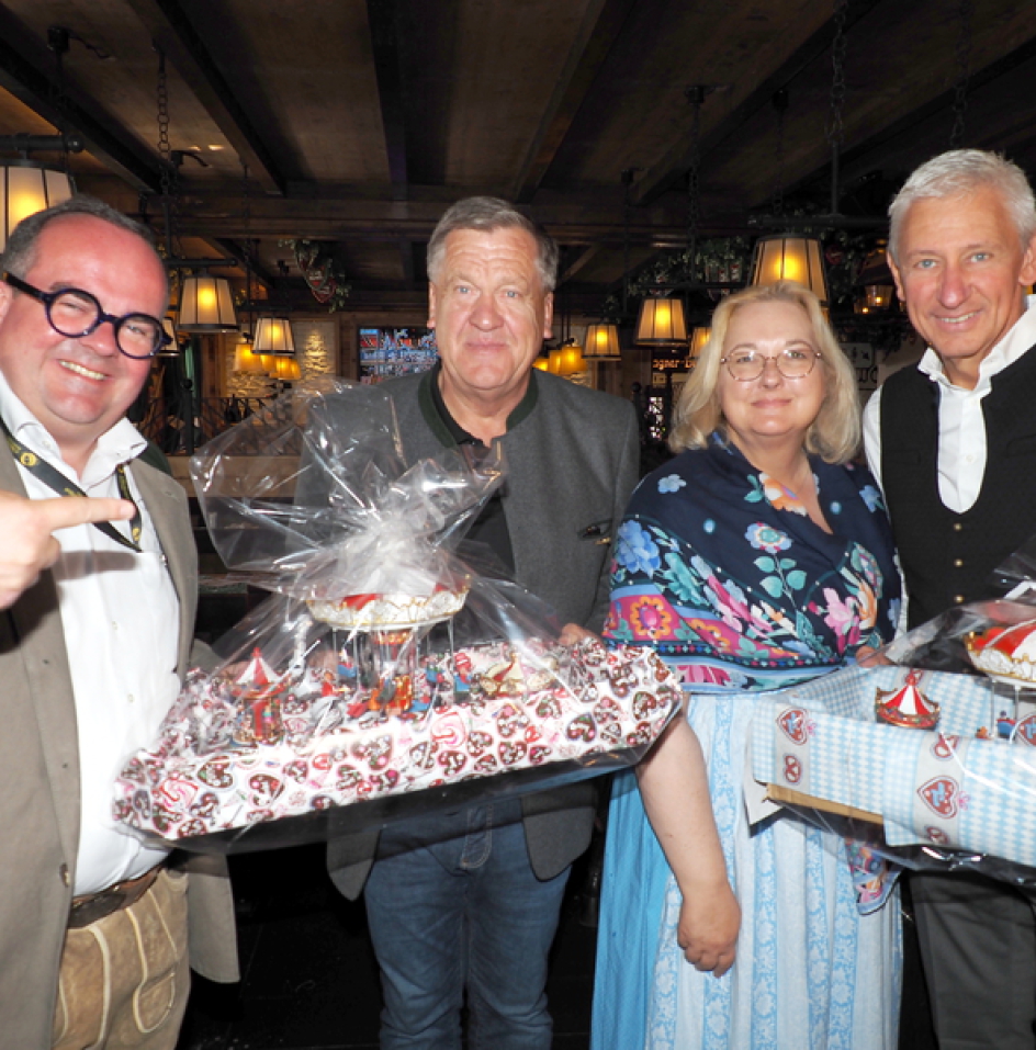 Bei den Gastgebern, Sabine, Verena und Siegfried Able, bedankten sich die Schausteller auch mit einer Mini Wiesn und einem großen Blumenstrauss. Able: „Es ist uns eine große Ehre, dass Sie bei uns sind“.