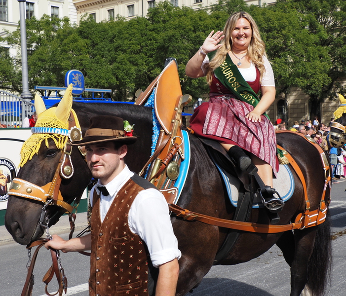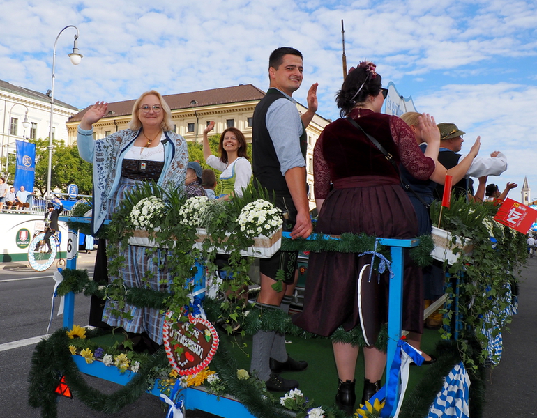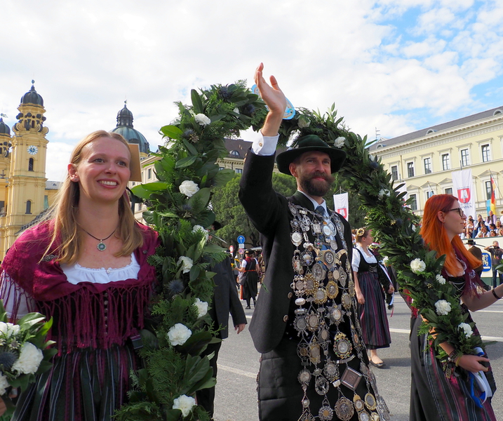 Rund 9.500 Mitwirkende, gegliedert in 50 Zugnummern, zogen am 18. September 2023 bei Kaiserwetter vom Max II Monument durch die Münchner Innenstadt zur