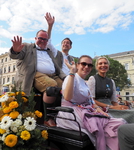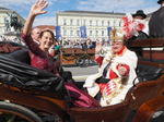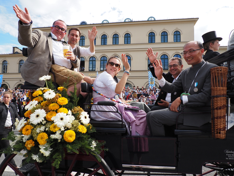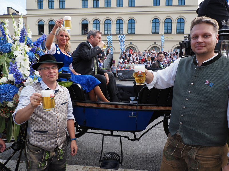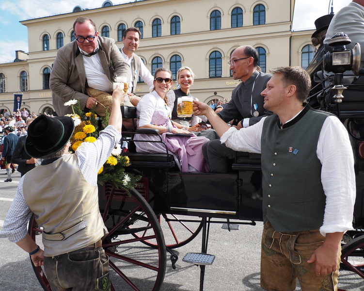 Neben den Prachtgespannen der Münchner Brauereien haben mehr als 40 festlich geschmückte Festwägen und Kutschen am Festzug teilgenommen. Angeführt wurde der Zug durch das Münchner Kindl, Franziska Inselkammer, hoch zu Ross. In festlich geschmückten Kutschen im Zug dabei auch der Münchner Oberbürgermeister Dieter Reiter, der bayerische Ministerpräsident Markus Söder und Wiesn-Chef Clemens Baumgärtner.