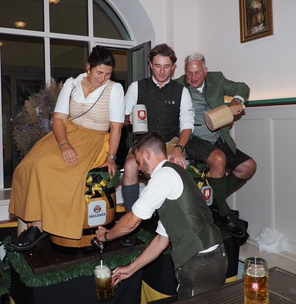 Wiesnwirte-Sprecher Peter Inselkammer dankte den Braumeistern für ihre Arbeit mit einem XL-Wirtekrug 2024 – einer Sonderedition des Wiesnwirte-Kruges 2025. Bis in die späten Abendstunden wurde im