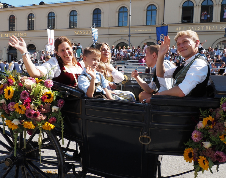 Tausende Teilnehmer präsentierten farbenprächtige Trachten, Musikgruppen, Schützenvereine und festlich geschmückte Pferdegespanne. Unsere Fotos zeigen die schönsten Momente dieses traditionsreichen Oktoberfest-Umzugs bei echtem Kaiserwetter.