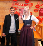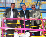 Die Schausteller Bosse Peter Bausch (li) und Robert Eckl (re) mit Christian Scharpf