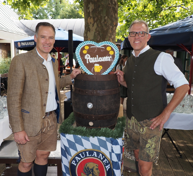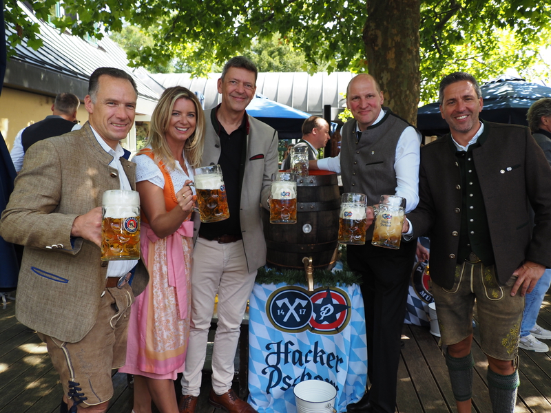 Neu in diesem Jahr: Maximilian Mirlach, der erstmals als Hacker-Pschorr-Braumeister das Oktoberfestbier mitverantwortet. Er folgt auf Rainer Kansy, der künftig als „Director Operations“ neue Aufgaben übernimmt. Symbolisch übergab Kansy den Zapfhahn an seinen Nachfolger – ein feierlicher Moment für alle Gäste.