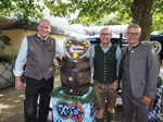 Bevor die ersten Krüge gefüllt wurden, erinnerten die Braumeister an die Grundlagen des bayerischen Bierbrauens: Wasser, Gerste und Hopfen – mehr Zutaten erlaubt das Reinheitsgebot von 1516 nicht. Danach hieß es endlich: „O’zapft is!“ Mit zwei Schlägen, beinahe synchron, zapften die Braumeister die ersten Maß an.